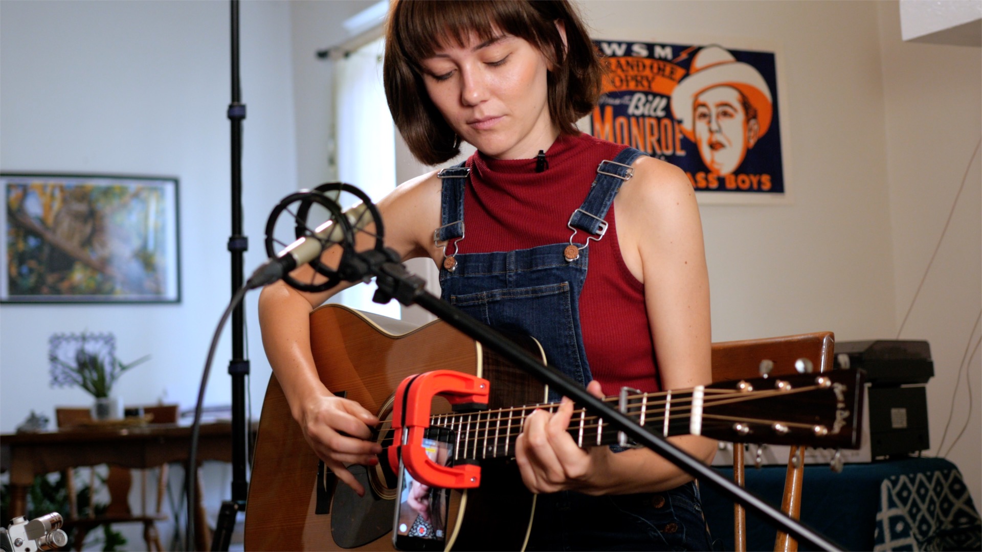 In particular, we thought it would be informative to watch Andy play the same pieces on both acoustic guitar and mandolin. The body shapes differ enough that Andy does indeed have somewhat different approaches on each instrument. What resulted is a unique look at three timeless bluegrass standards played with similar arrangements on both instruments: Whiskey Before Breakfast, Jerusalem Ridge, and Red-Haired Boy.